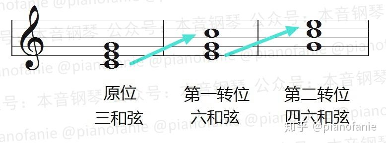转位 C大三和弦 C- E - G 的转位变化 原位 C - E - G 第一转位 E - G - C 第二转位 G - C - E 转位后和弦中各音的名称和原位保持一致,所以六和弦由下至上分别叫做三音、五音、 根音(因为根音转上去了),四六和弦由下至上分别叫做五音、根音、三音(因为三音转上去了)。 某个音8度的转换,不影响协和度 C-D 大二度 D-C 小七度 不协和 C-E 大三度 E-C