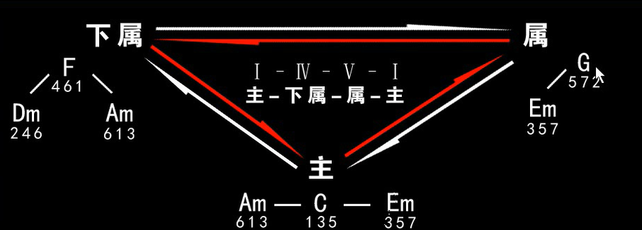 251 用于局部位置,以最后面这个和弦为一级,寻找它的二级和五级,放到前面这两个位置去衔接。可以看作是一个小型的转调。 例如:G和弦 G - B - D ,音阶 G - A - B - C - D - E - F G和弦看作一级,对应的二级是A,五级是D,那么就是A - D - G。可以起到装饰作用。属于装饰和弦。 2 5 1 A B C D E F G Fm - C 利用Fm和弦向C和弦的倾向
